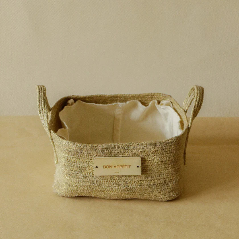 Introducing Akiiko, our charming and functional "Sabai Grass Square Basket"! Handcrafted from durable sabai grass, this mini basket features a soft canvas lining for storing small items. Its natural design and rustic square shape add a touch of elegance to any space. Make organization effortless with Akiiko!