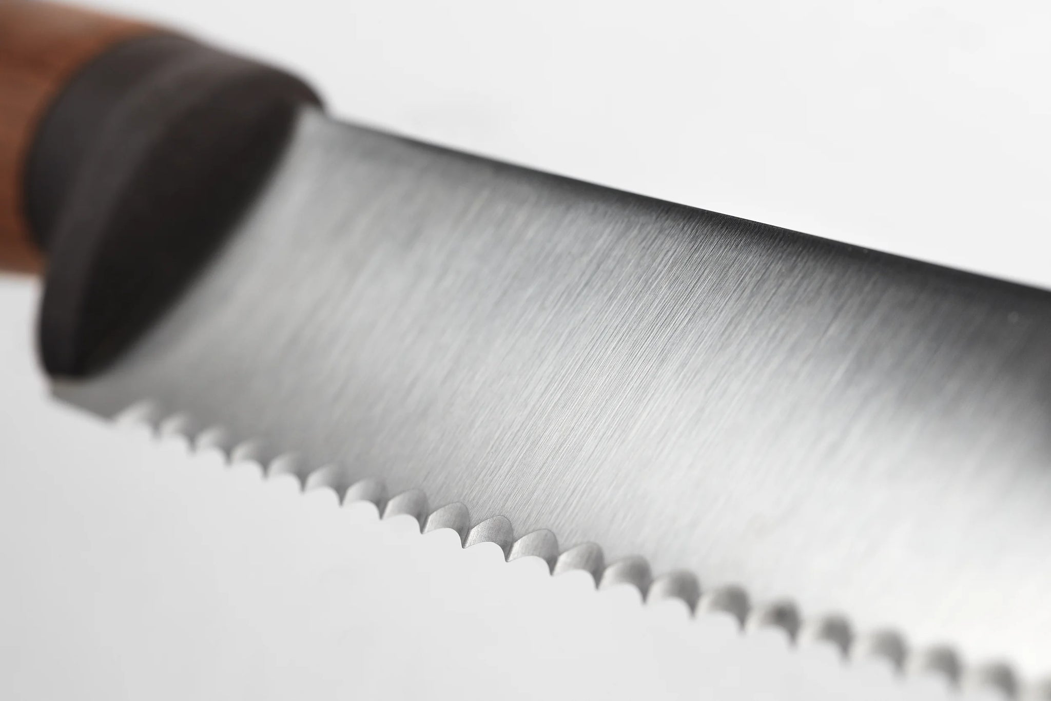 A classic amongst the range of knives that belong in every kitchen: as well as bread, this knife is suitable for use on hard-skinned vegetables and fruit, as well as for roasts, especially those with crackling. The concave (inwardly curved), serrated edge of the knife works like the teeth of a saw, but is much finer, so no pressure is required to cut any sort of bread and even a hard crust will allow a clean cut.