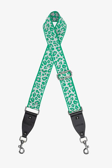 This striking Cheetah Silver & Green Bag Strap combines cheetah print with a twist of modern elegance—featuring a dynamic silver lurex sheen and vibrant green accents.