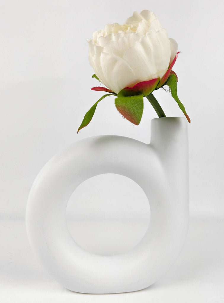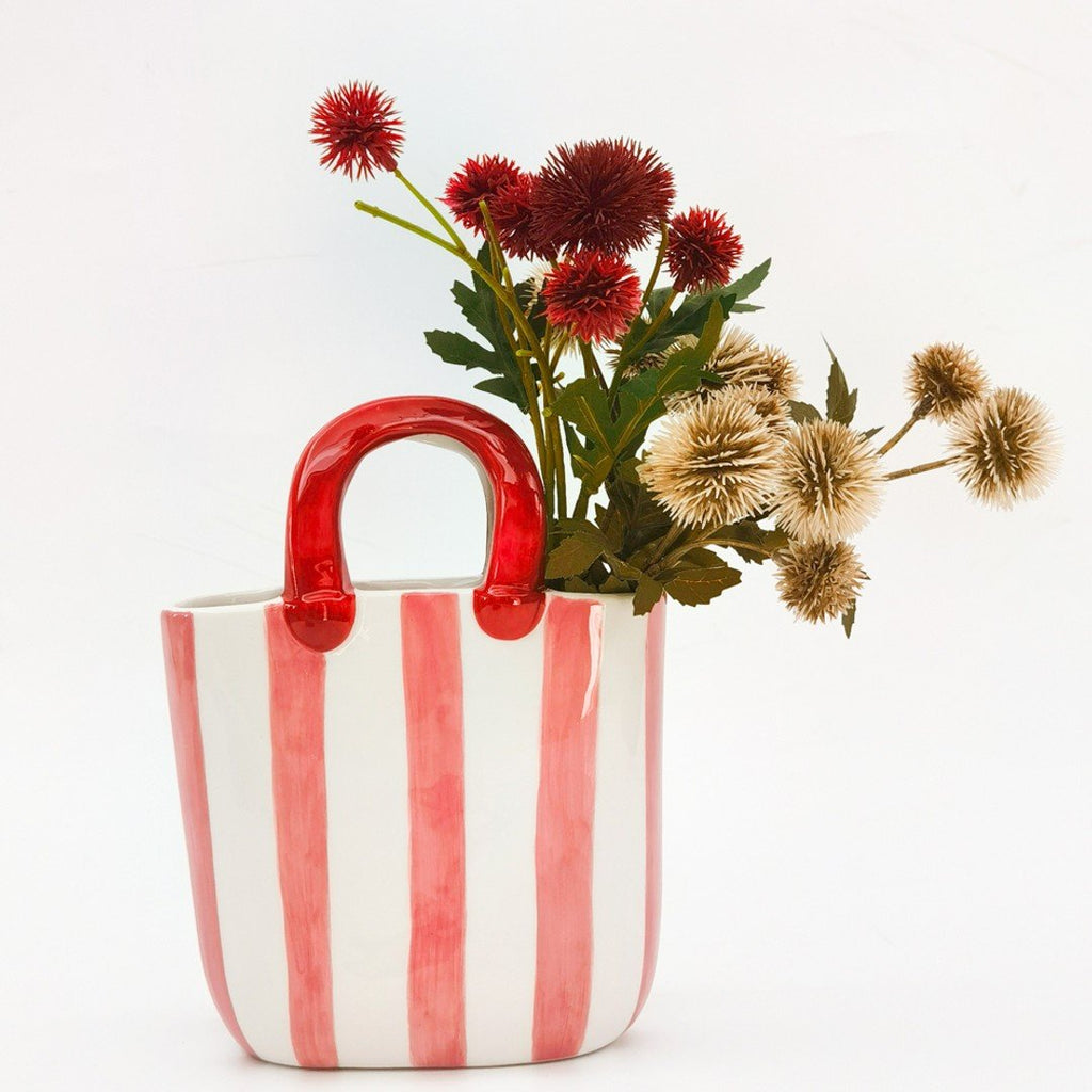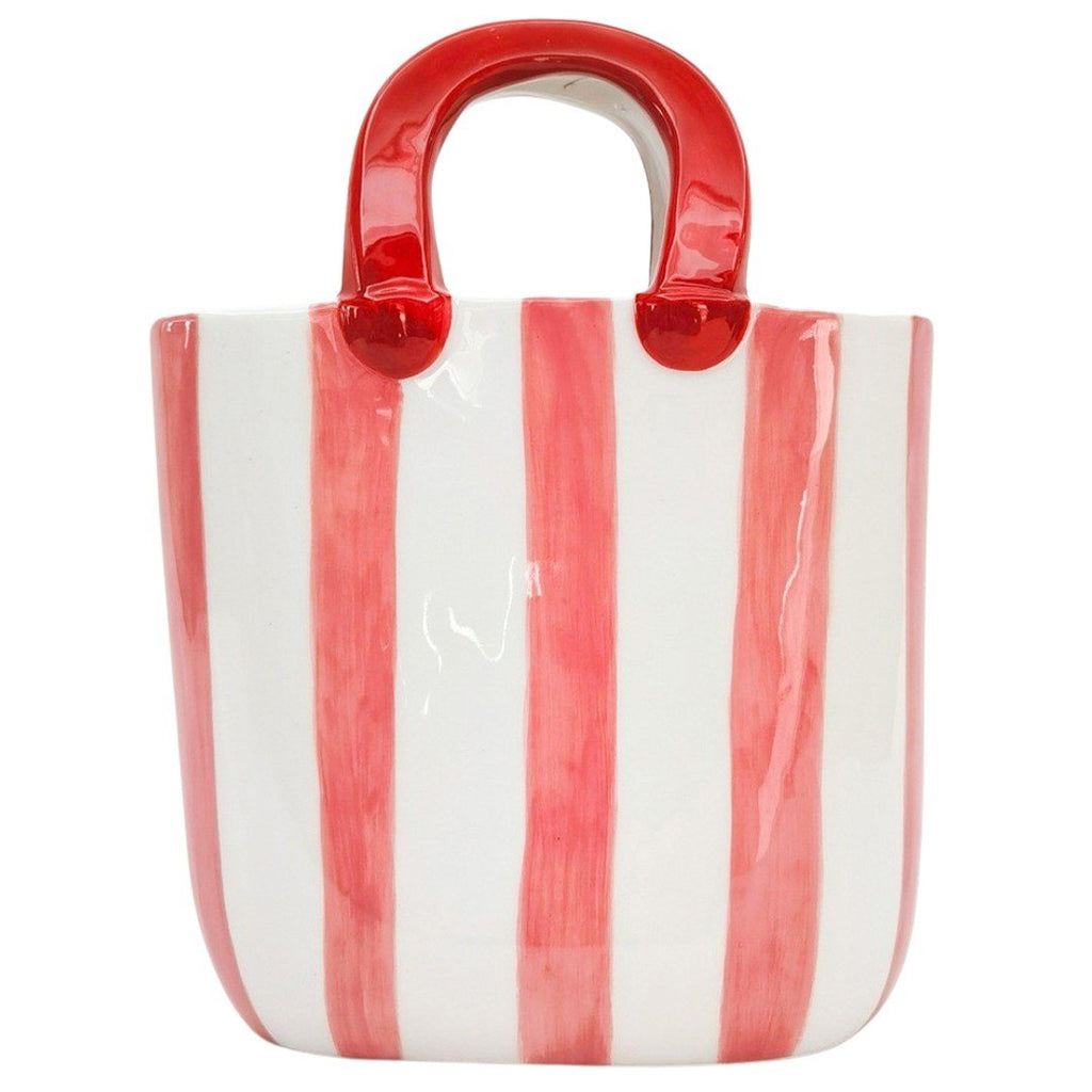 Stripe Handbag Flower Vase Ceramic Pink | 23cm