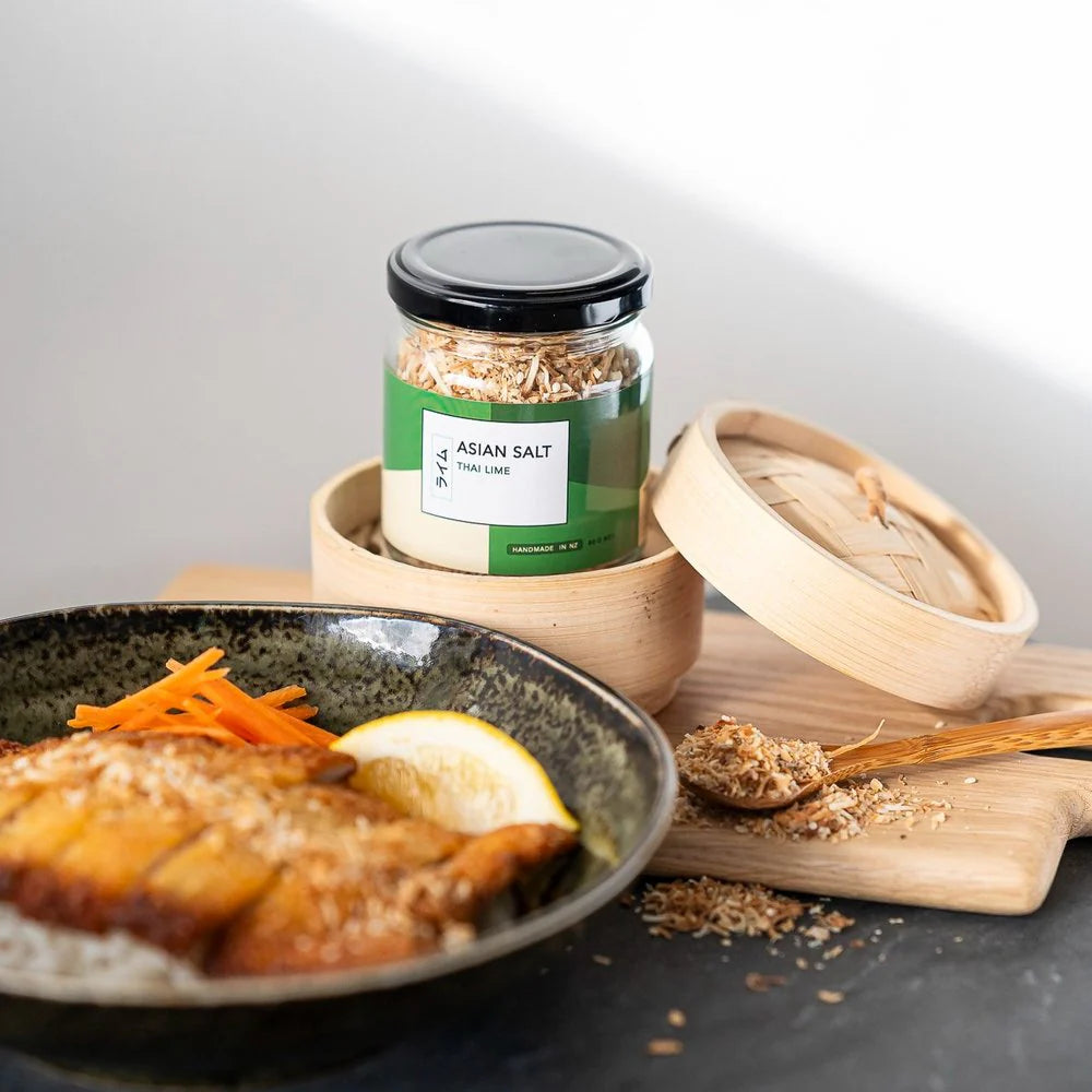 A versatile salt garnish with flavours of Thailand, lime leaf, lime and coconut. Impress friends at your next dinner party with a punchy addition to your menu. Sprinkle over calamari or fish, flatbread or pizza as a flavoursome seasoning.