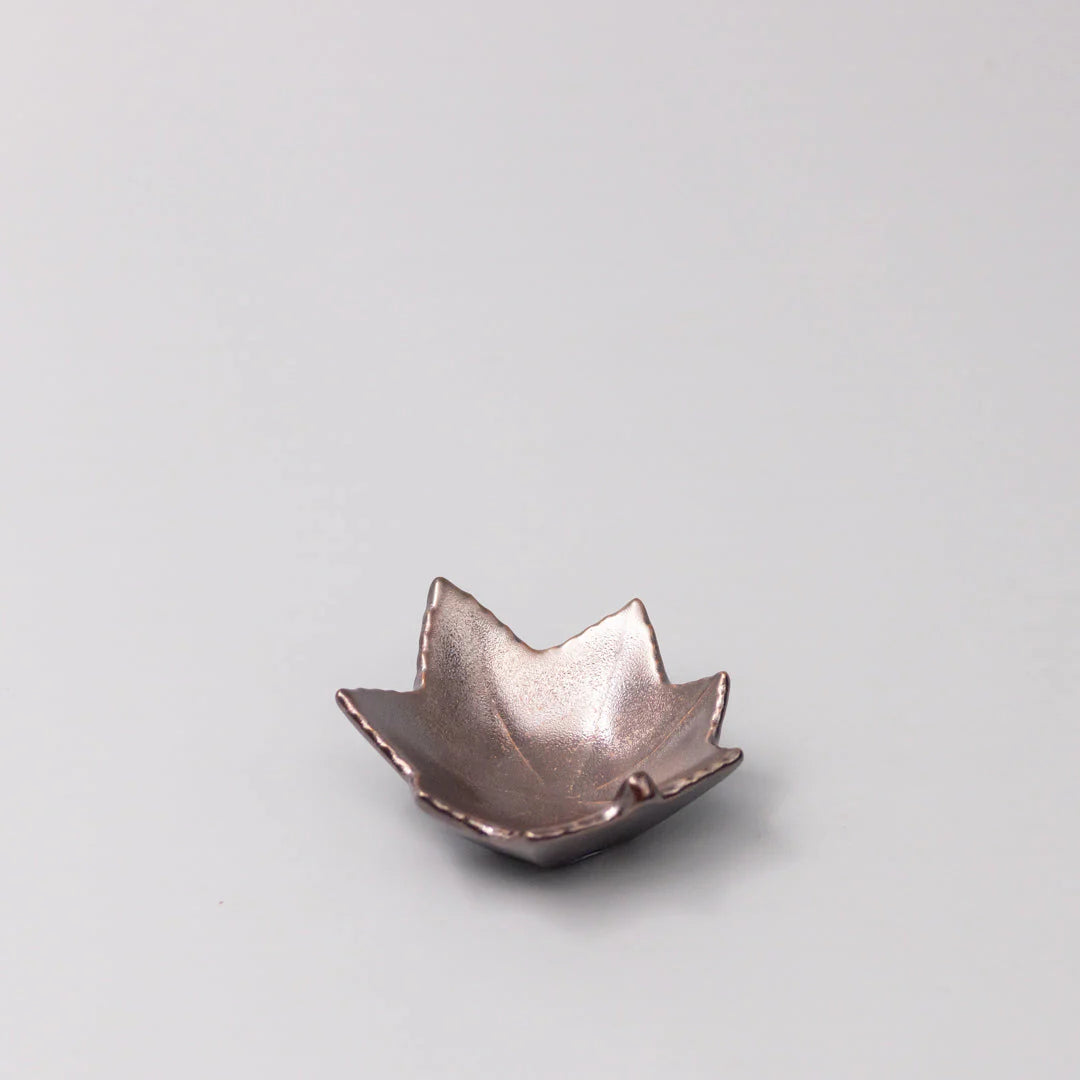 Featuring a delicate hand crafted Maple leaf shape sauce dish in a beautiful metallic glaze. Made of 'Minoyaki' porcelain, fired at a high temperature and hand finished.