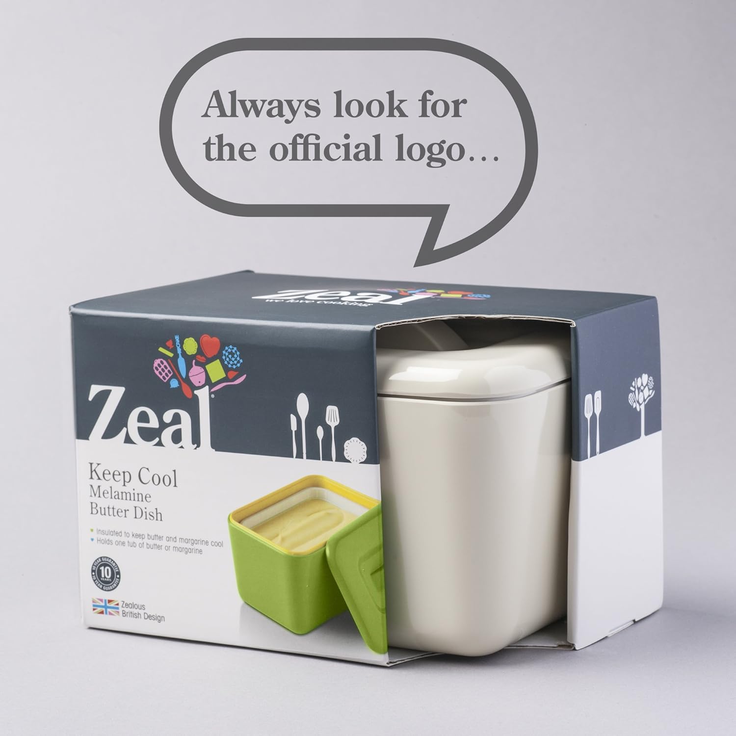 - Zeal British Design Unique Lidded Insulated Butter Dish With White Liner, Perfectly Holds A Standard 500-Gram Spreadable Margarine Tub Or One-Pound Pack Of Butter.