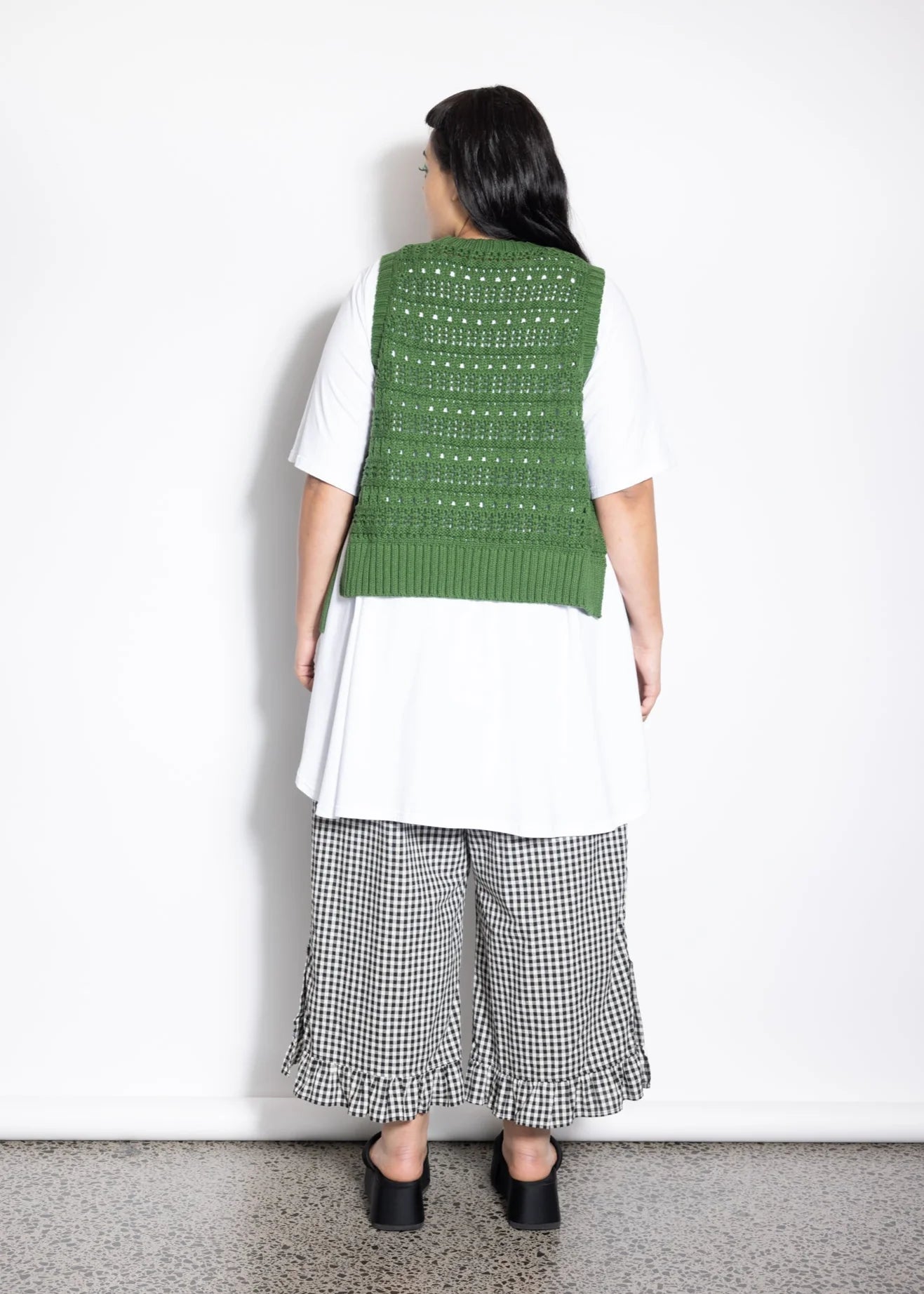 The new Lani Vest gives a cool crop silhouette to whatever you choose to layer it over or wear it on its own! The lacey knit design and cotton yarn make it ideal for summer. The side splits give you a nice line, and the side ties are adjustable to give you the perfect fit. You can style this so many ways, from business casual and preppy to streetwear and boho vibes.