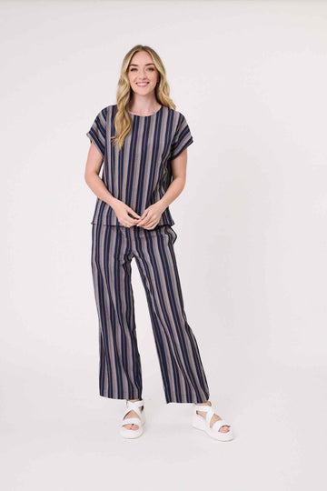 • Composition: 70% Viscose Nautical white, mocha stripe against navy background.