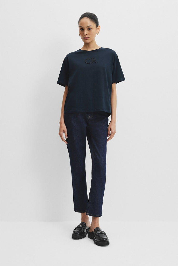 This tee is proudly made using textured Australian cotton for everyday comfort. Cut in a relaxed, boxy silhouette, it features a classic crew neckline and an embroidered monogram at the back of the neck.
