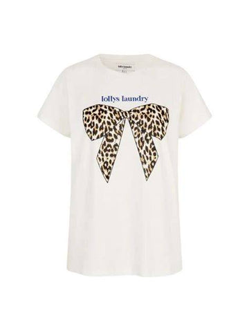 Classic white T-shirt in 100% soft cotton with a regular fit. The blue Lollys logo and leopard-print bow add a feminine and eye-catching twist – perfect for everyday life with a personal touch.