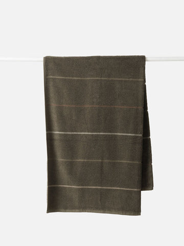 The Pia bath towel range adds a hint of soft colour to your bathroom. The subtly coloured flatweave stripe sits smooth while the body of the towel has an absorbent terry finish.