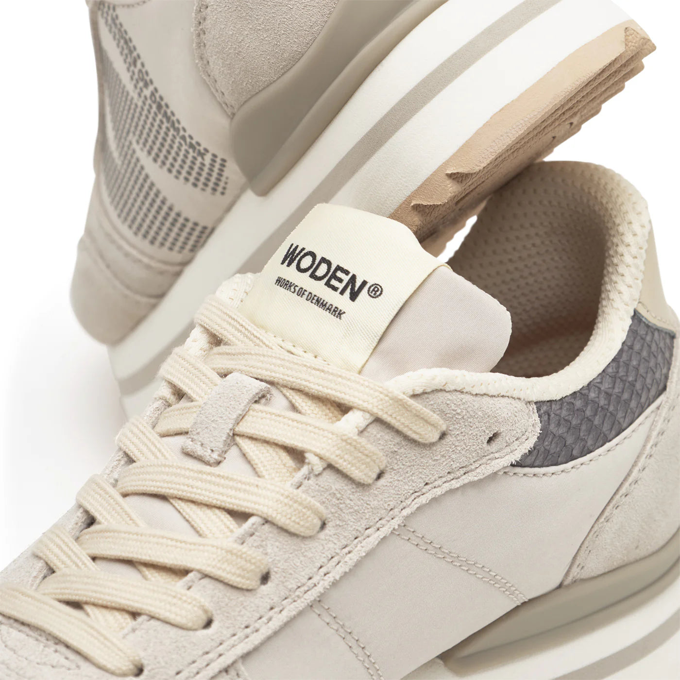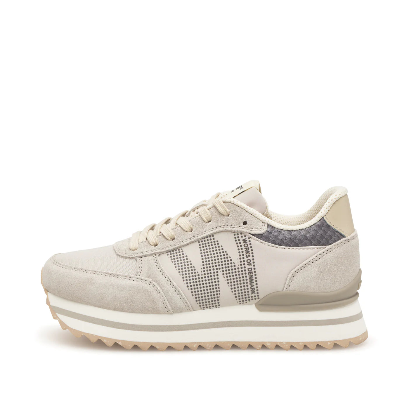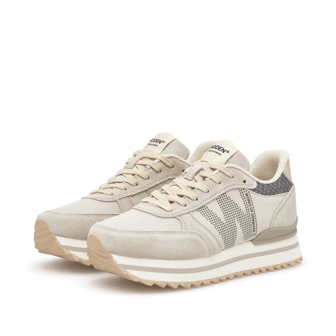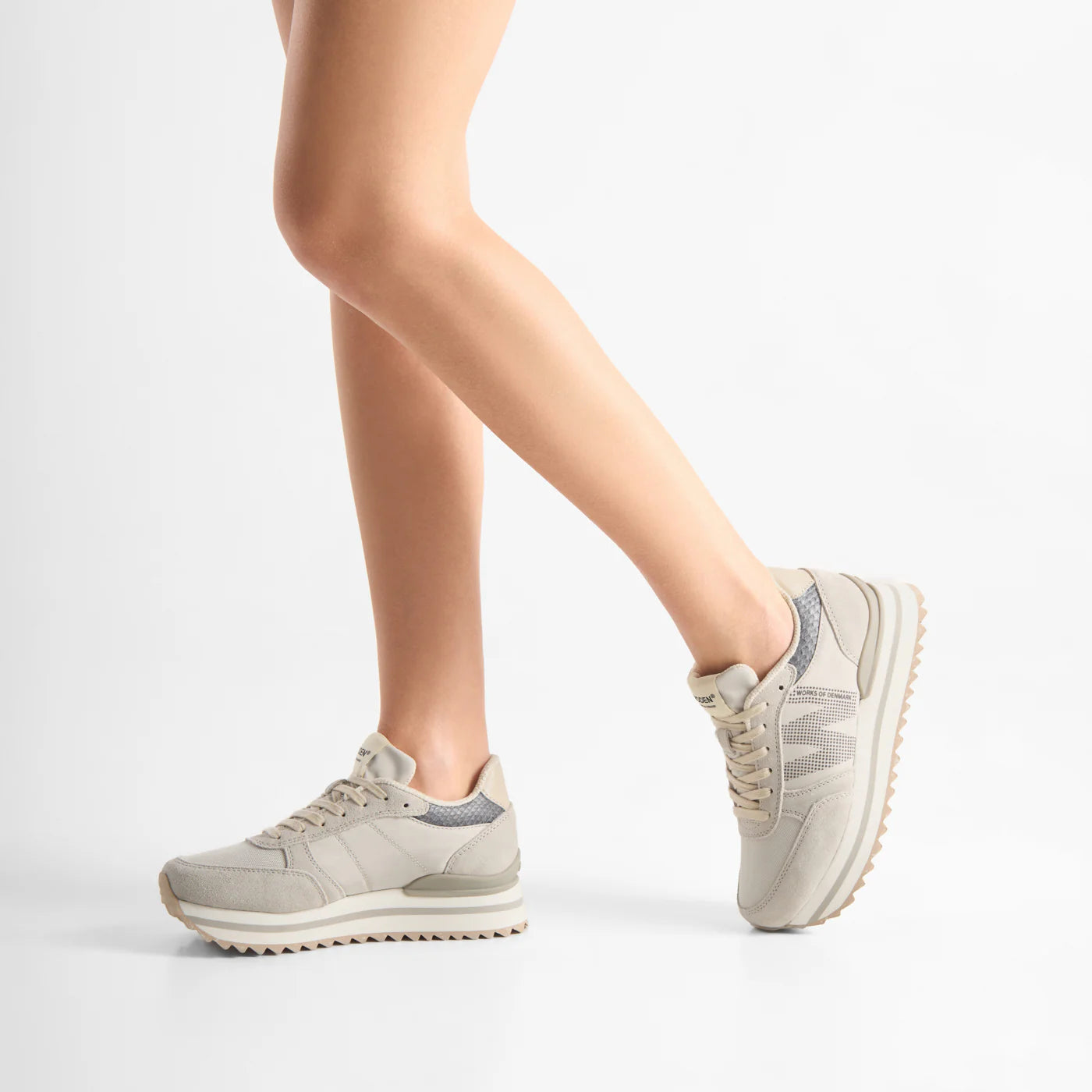 Introducing Ronja Plateau, a new design variant of our bestselling sneaker Ronja. Based on an innovative design with stylish color-blocked details and a sporty flair, it is crafted from a combination of suede and textile, featuring distinctive fish leather accents on the heel.