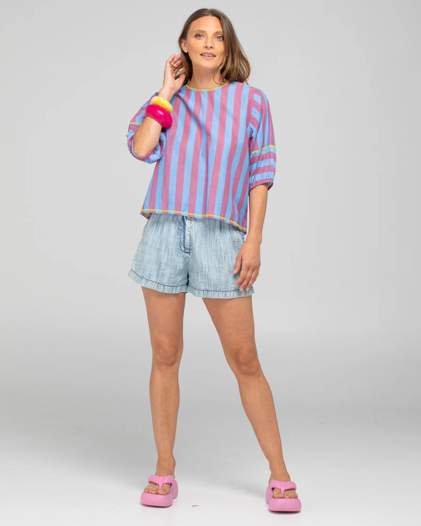 The Boom Shankar Ava Top is your new essential! This slightly cropped top in 100% cotton is comfortable and easy-to-wear throughout the seasons. The puff sleeve detail adds a touch of fun to this classic design.