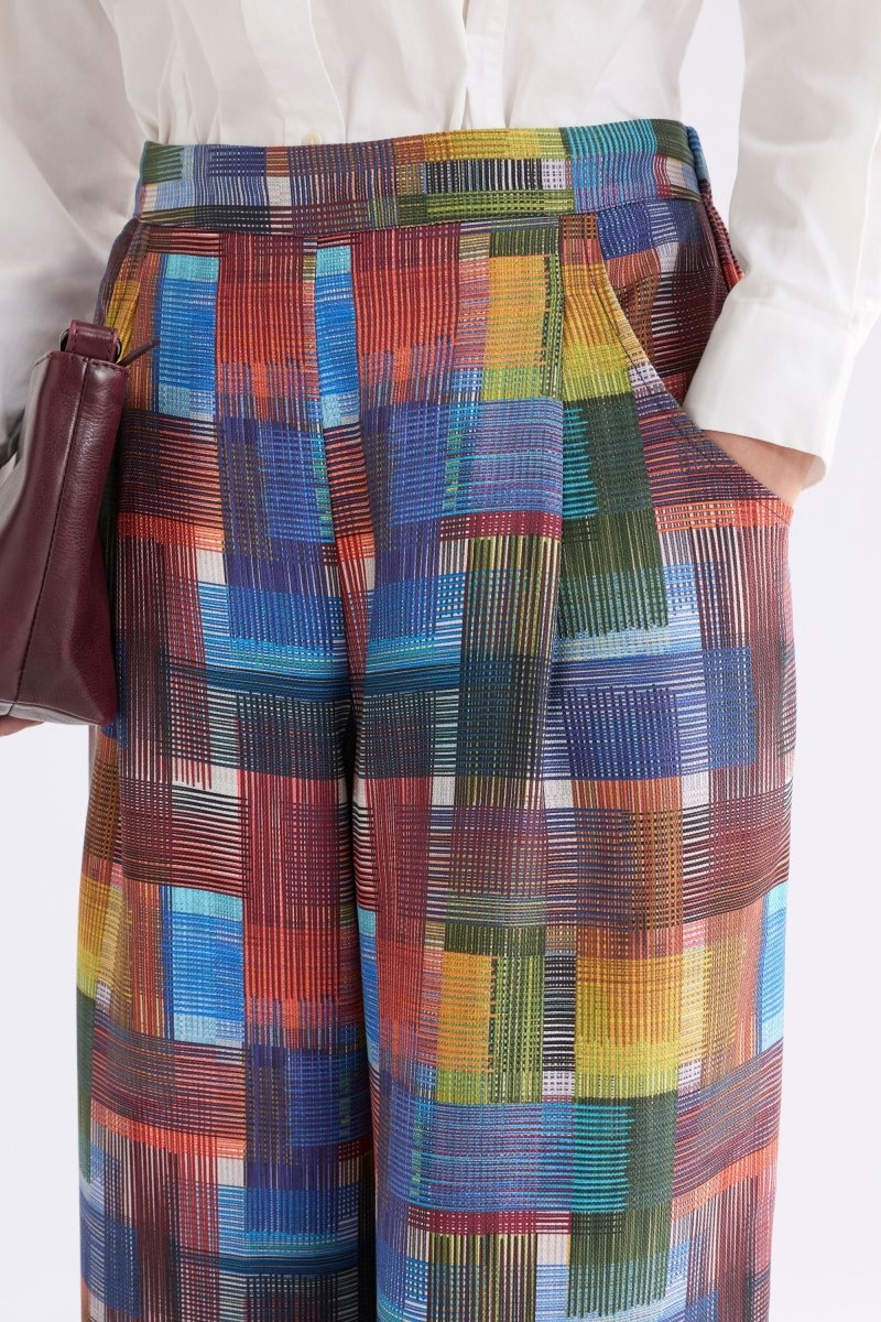 The Seine Pant is playful, smart pant crafted from 100% TENCEL™ Lyocell featuring the striking Elbrus Print of deconstructed multi-coloured checks. This regular fit, tailored pant has a flat front waistband with elastic back and internal drawstring waist tie, for a comfortable adjustable fit. Finished with curved front pockets, and back patch pockets, along with a front tuck. Designed to finish at or just below the ankle bone. Pair with our Pressa Shirt, simple, plain tops or the matching Seine Jacket for a full head-to-toe statement look.