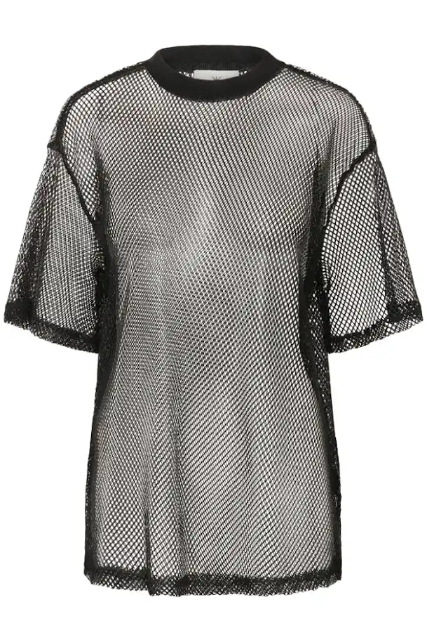 The Bibi Tee in Meteorite by Karen By Simonsen is a relaxed-fit, mid-thigh tee with short sleeves and a subtle fishnet texture, perfect for easy everyday styling year-round. Ideal for layering or wearing solo with denim, tailoring, or skirts.