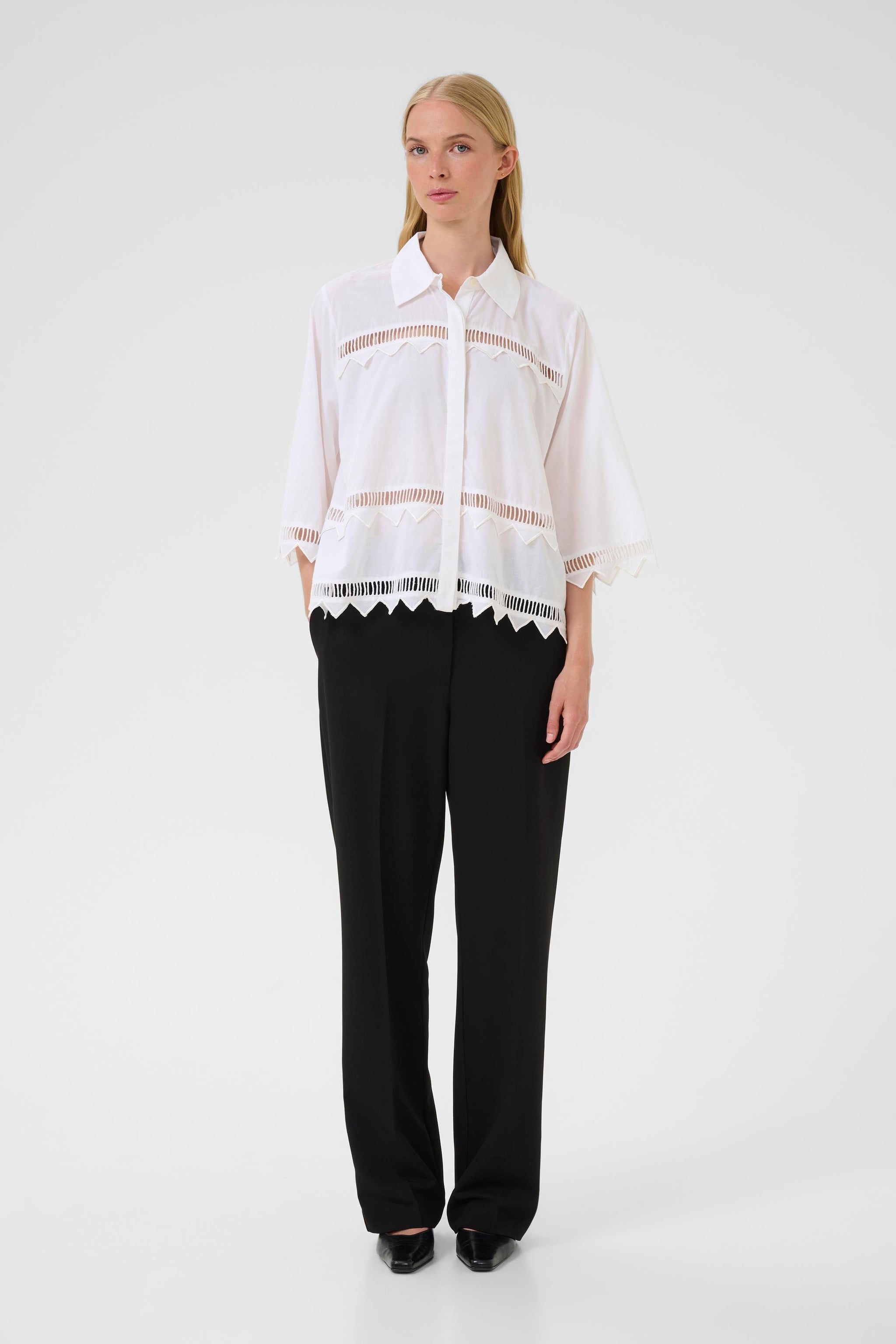 Meet your new wardrobe essential—the Karen By Simonsen Ommi Shirt in crisp bright white. This playful piece combines a breezy, relaxed boxy fit with striking geometric cut-outs that make a subtle statement.
