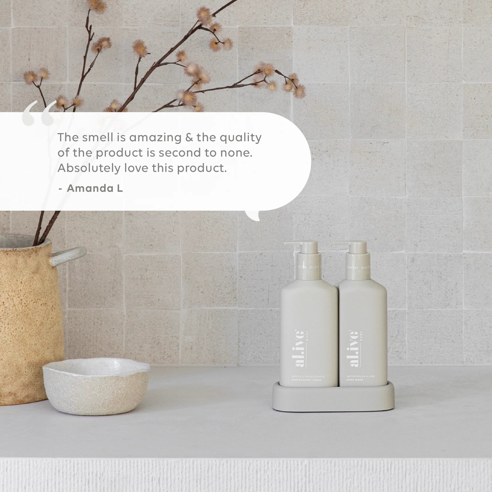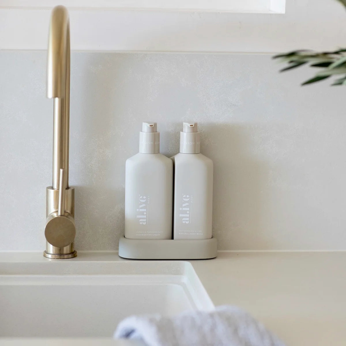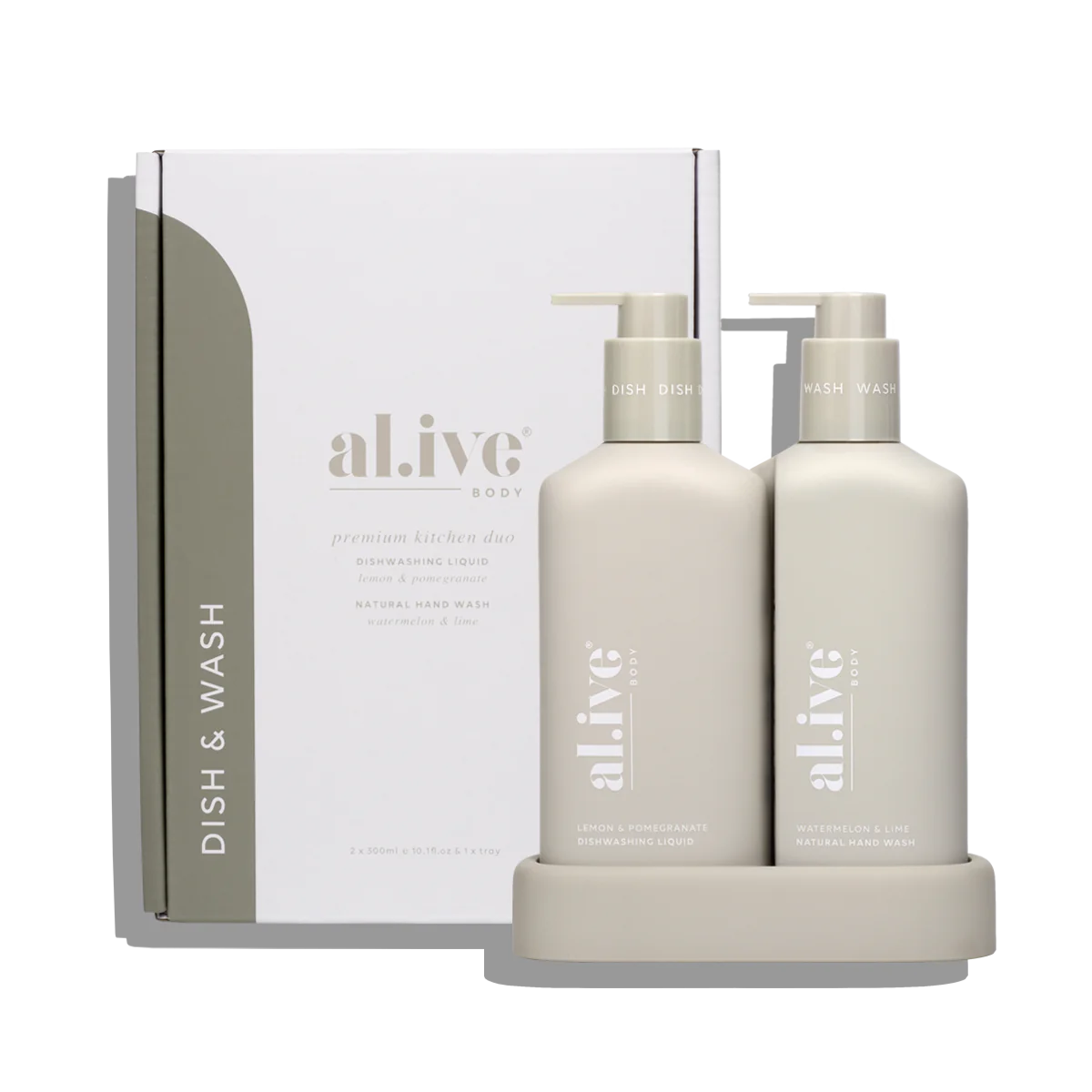 The al.ive body Hand Wash & Dishwashing Liquid Premium Kitchen Duo is a beautiful yet practical product,  elegantly packaged to elevate your countertop.