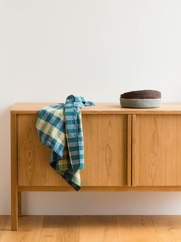 The Anni Tea Towel combines hues of sea, spirulina and mulberry to bring a playful palette to your kitchen. The nostalgic plaid pattern was designed in New Zealand by our in-house textile designers Imogen Tunnicliffe and Sophie Clapson.