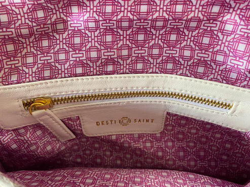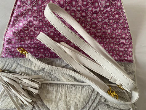 This stunning natural leather clutch is individually made and lovingly etched by hand to form a gorgeous floral pattern. Lined in eye-catching satin fabric using our logo design, the clutch is wonderfully tactile to hold. Finished with a Love Knot natural howlite stone ingot and our signature tassel.