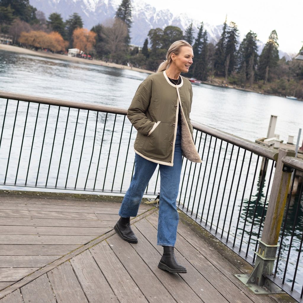 Flip it, style it, love it this reversible jacket is basically two jackets in one. Rock the olive green side or switch to cream whenever the mood strikes.