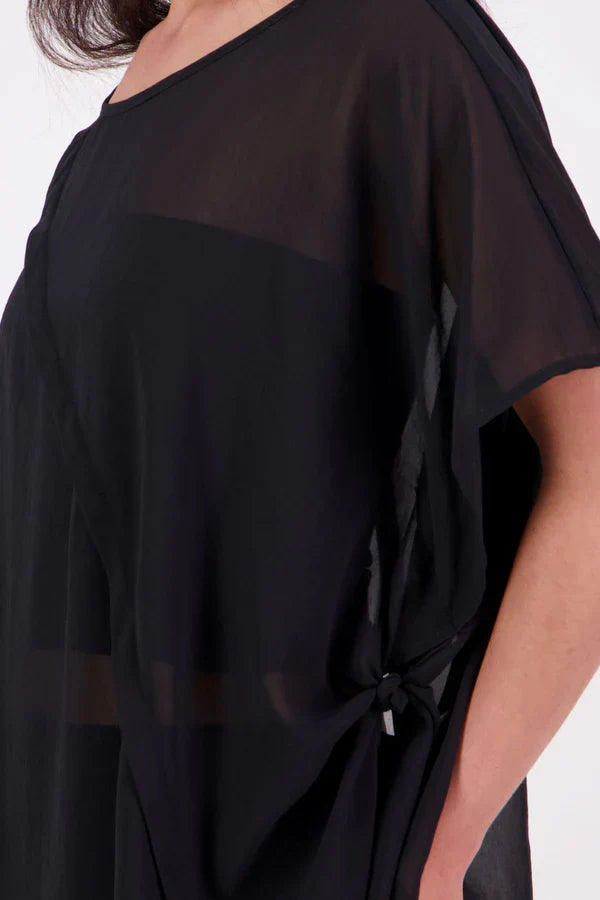 The Luna Top is a modern evolution of a NES favourite. Crafted with exposed French seams on the outside, an angled front seam, and a left-side split for added movement, this sheer layer brings elevated ease to any outfit. Style it over a NES lattice singlet or your favourite base – the Luna Top is designed for effortless layering with a refined edge.
