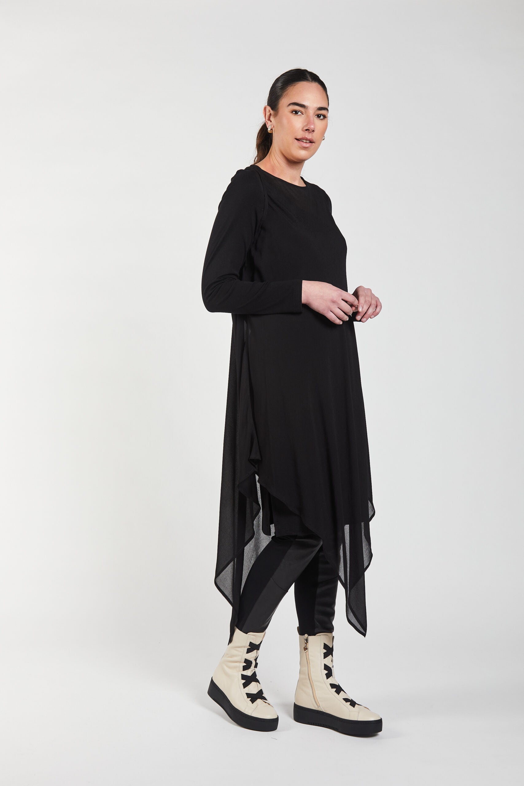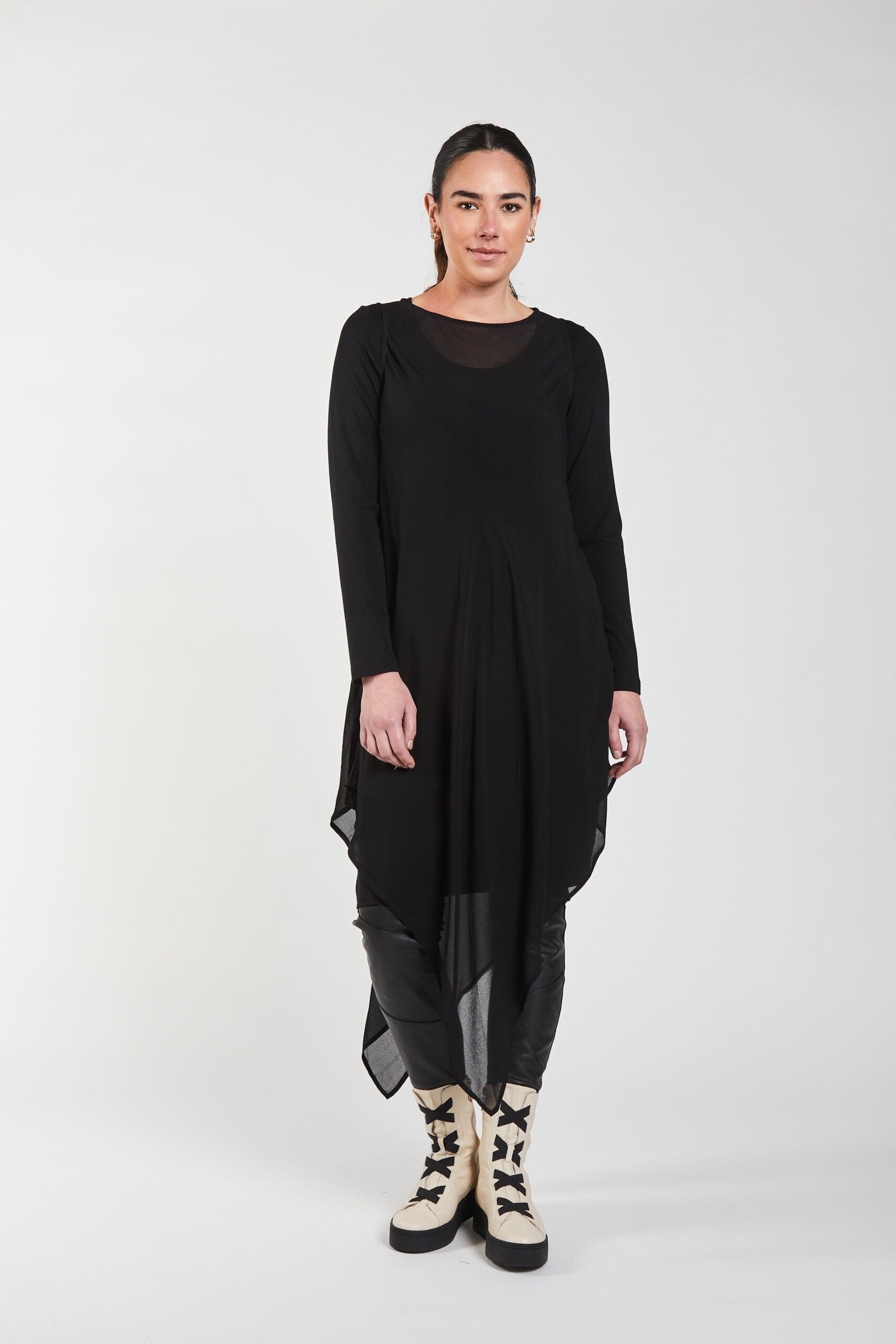 This Ghost Tabbard is a fluid, edgy sleeveless layering piece designed to bring movement and dimension. Crafted from a lightweight viscose, draping effortlessly over the body, creating a soft, elongating silhouette, a delicate, airy quality that allows it to flow beautifully while maintaining a refined, polished look.