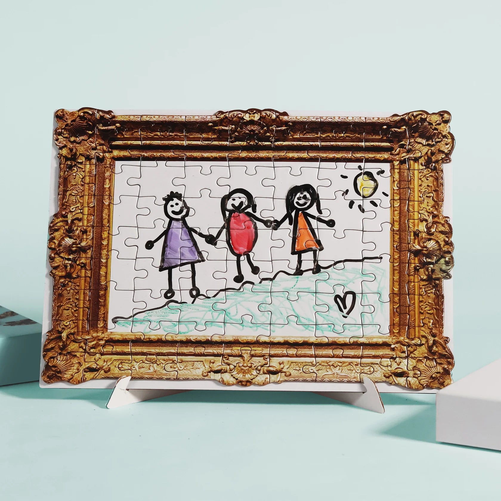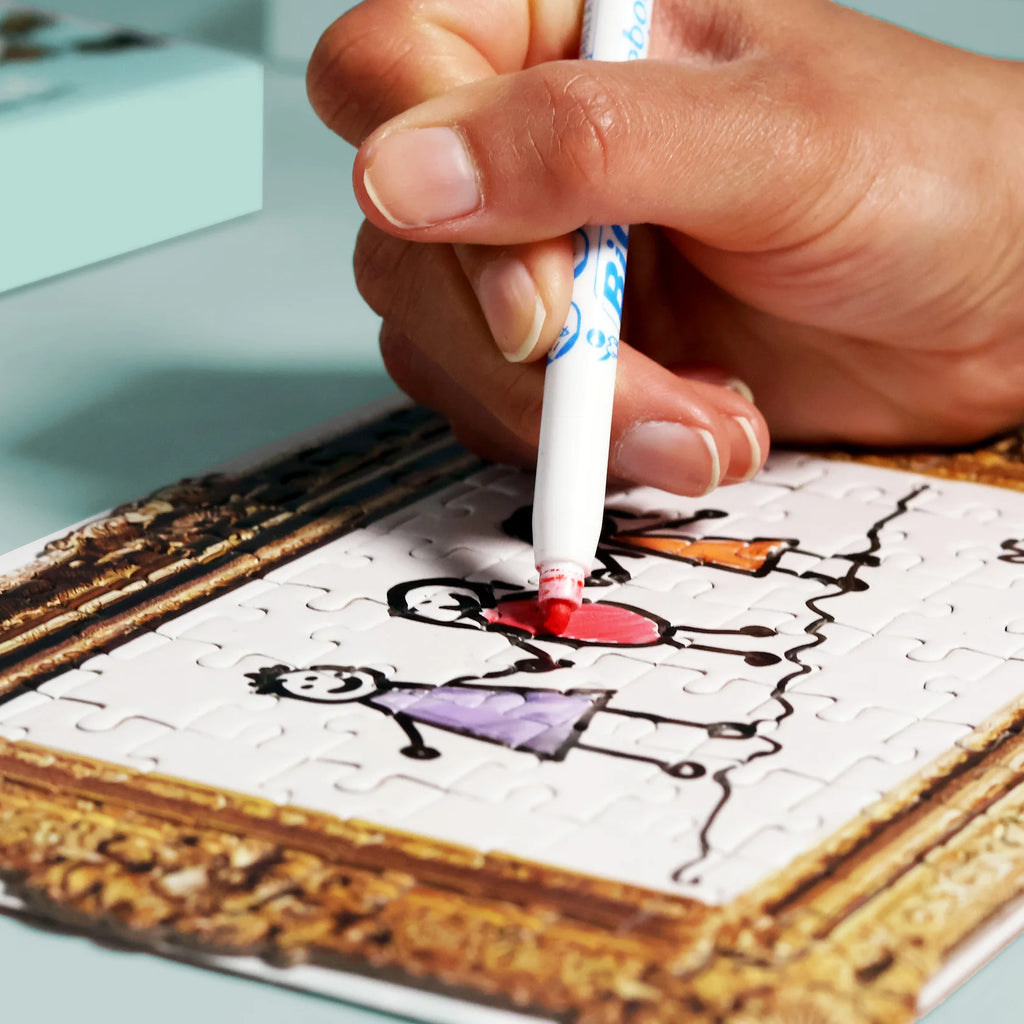 - Use your choice of pens or pencils to draw a picture on this blank framed canvas puzzle, then break apart and place it into the included gift box for the most touching gift.