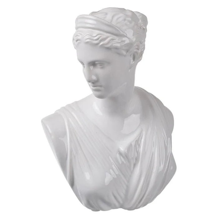Take inspiration from classic art for your next interior decor arrangement with the jolie bust statue. this medium-size statue is crafted from smooth ceramic with a glossy white glaze. this piece is perfect for minimalist, modern, and traditionally inspired interiors.
