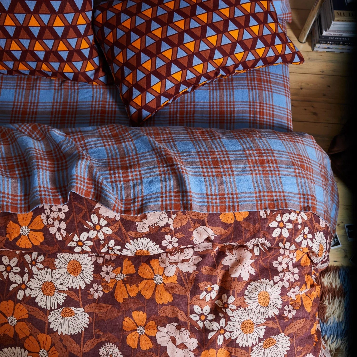 “Our Pello bed linen is a fresh take on a timeless yarn dye check. Giving a vintage feel with a contemporary twist through the oversized check pattern, this design sparked our love affair with the brown and blue pairings this season. Create a simple check look or pair with florals or geometrics to create a layered pattern aesthetic.” – Phoebe’s Style Notes
