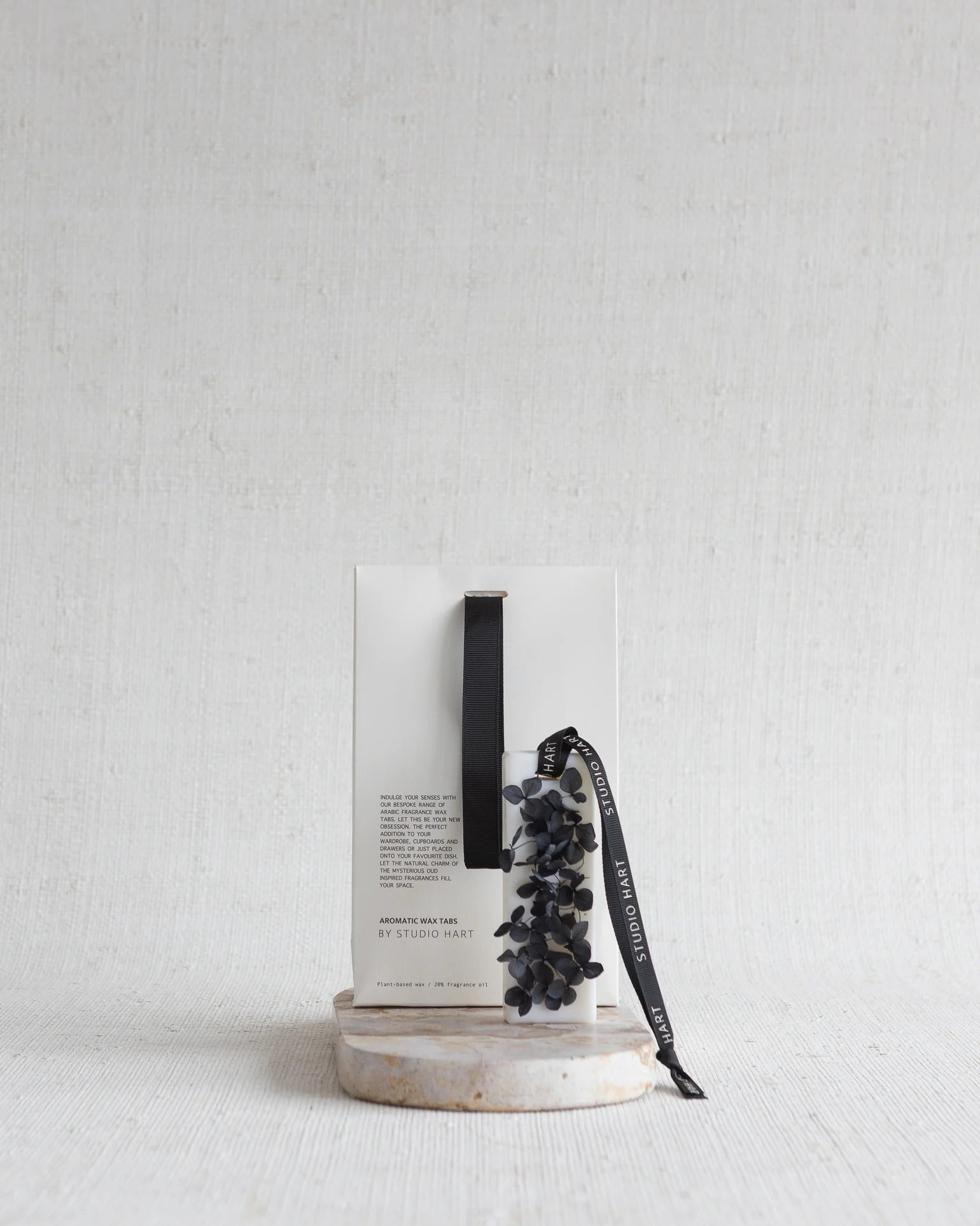 Handcrafted from solid plant-based wax and adorned with botanical accents, Velvet Wood is designed to gently scent your space while adding a refined touch of nature. Whether tucked into drawers, nestled in wardrobes, or hung from its sleek black ribbon in your favourite corner - this aromatic tab transforms any nook into a sanctuary.