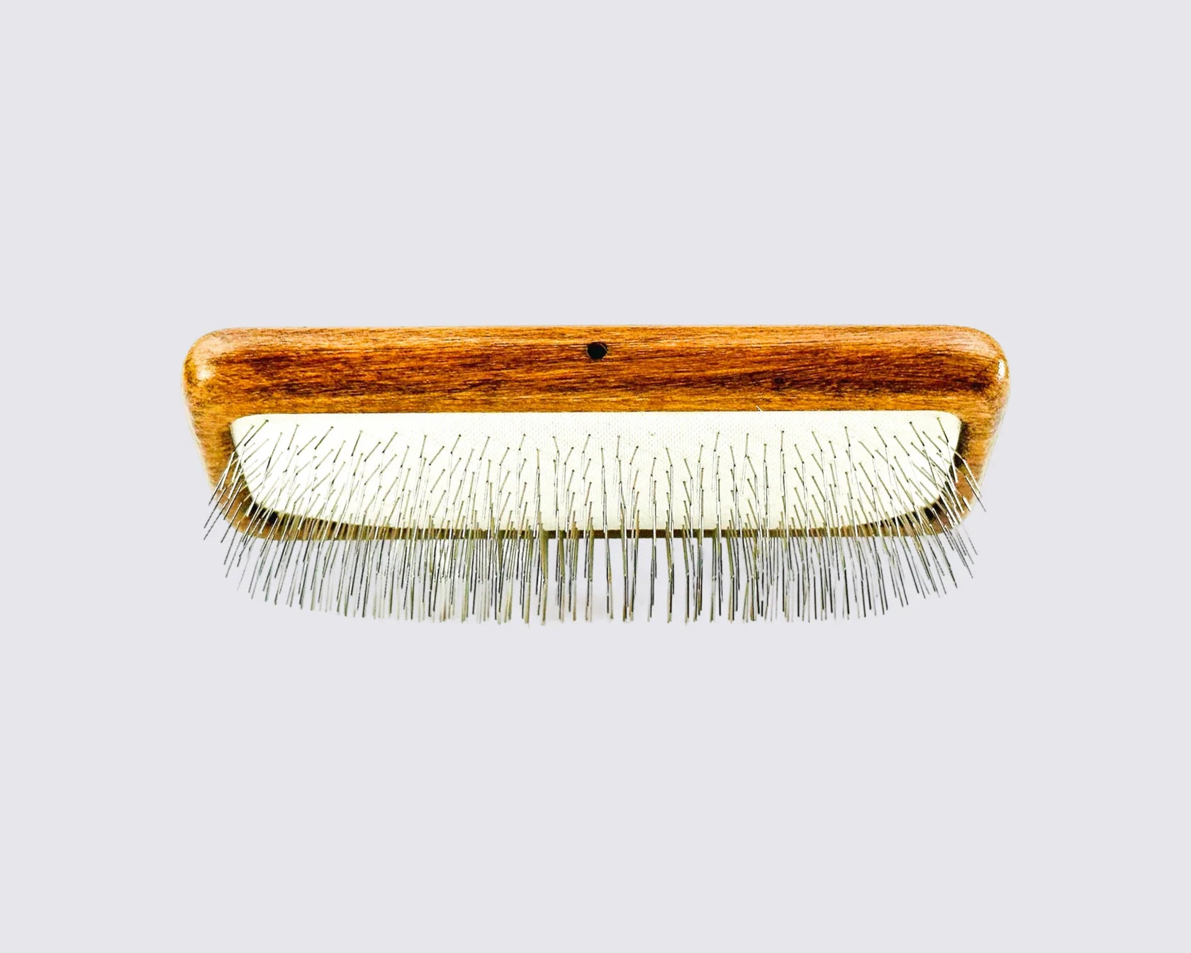A smart-looking wooden and stainless steel slicker brush that can expertly remove loose hair, providing your dog or cat with a polished appearance. The Slicker is medium-sized and made with durable fine stainless steel needles and premium beechwood.