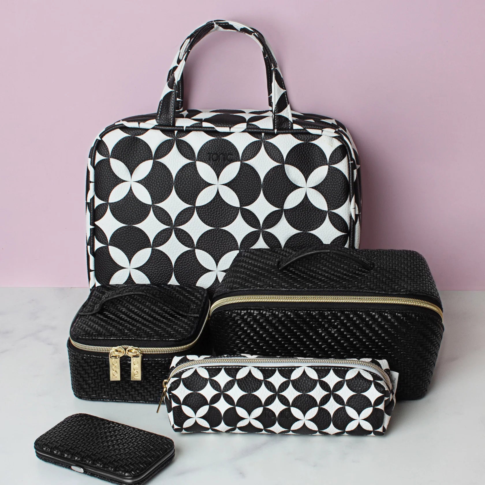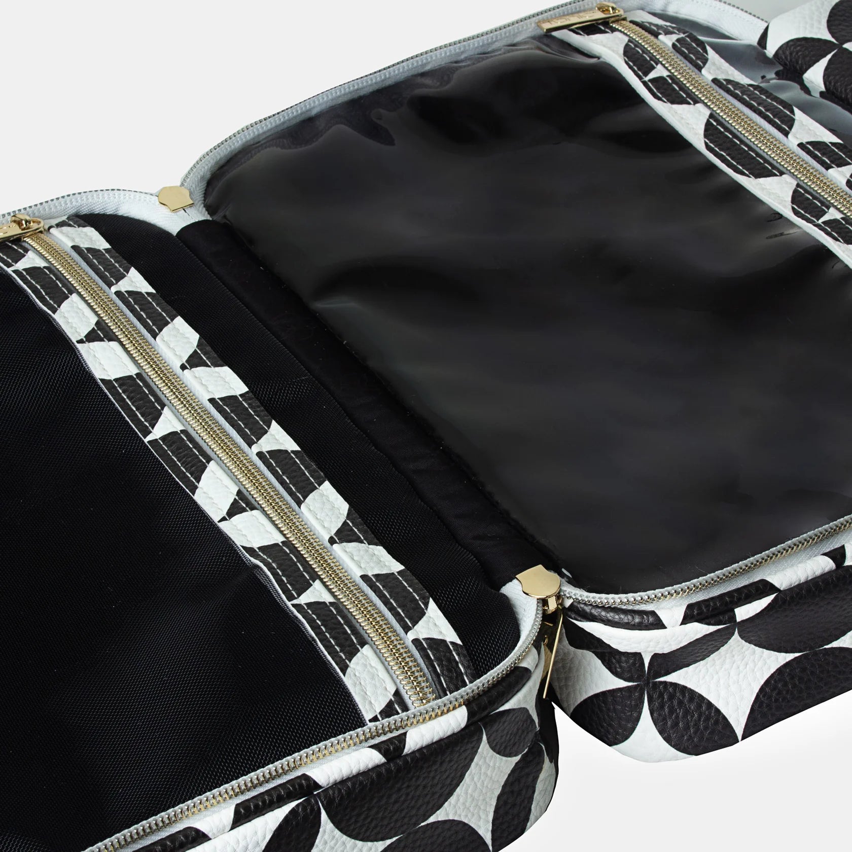 Stay organised and stylish while you travel in bold black and white with the Iconic hanging cosmetic bag. Created from the Tonic logo, the new Iconic geometric design is printed on a soft, easy care PU and is perfect for every trip away.